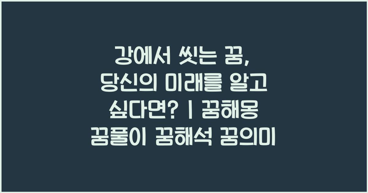 강에서 씻는 꿈은 깊은 정화의 상징으로, 그것이 당신의 미래를 보여주는 꿈일 수도 있습니다. 아마도 당신에게 다가오는 기회나 변화의 신호를 암시하고 있는 것일 수 있습니다. 꿈에서의 행동과 감정, 그리고 주변 환경에 따라 그 해석이 달라질 수 있습니다.