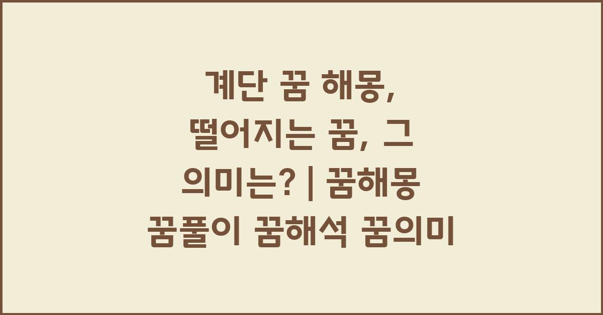 📜 계단 꿈 해몽: 떨어지는 꿈은 어떤 암시? | 꿈해몽 꿈풀이 꿈해석 꿈의미