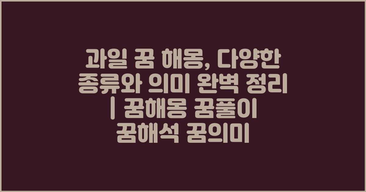 꿈은 우리 무의식의 창으로, 다양한 감정과 메시지를 전달합니다. 그 중에서도 과일은 풍요로움, 기쁨, 그리고 새로운 시작을 상징하는 요소로 자주 등장합니다. 과일 꿈 해몽, 종류별 의미 완벽 정리 | 꿈해몽 꿈풀이 꿈해석 꿈의미는 우리가 꿈속에서 과일을 보았을 때, 그 꿈이 전달하는 의미를 명확히 알아보기 위한 훌륭한 길잡이가 될 것입니다. 정말 많은 사람들이 이 주제를 궁금해하는 이유는 단순히 호기심을 넘어, 자신의 삶에 대한 깊은 통찰을 얻고자 하기 때문입니다. 여러분도 이런 경험 있으시죠?