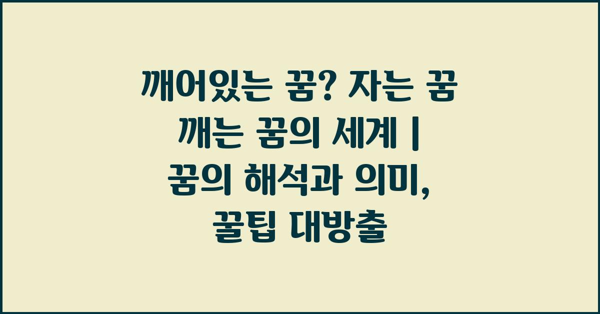 여러분, 꿈은 단순한 수면의 산물이 아니라 우리의 깊은 무의식을 반영하는 중요한 요소입니다. 깨어있는 꿈? 자는 꿈 깨는 꿈의 세계 | 꿈해몽 꿈풀이 꿈해석 꿈의미는 이러한 꿈의 해석을 통해 우리에게 많은 메시지를 전달하죠. 꿈을 통해 우리가 느끼는 감정이나 상태는, 실제 삶에서의 문제와 연관이 깊습니다. 제가 처음 꿈의 세계를 탐구했던 순간을 기억합니다. 그 당시, 나도 모르게 저의 내면 깊은 곳에서 올라오는 목소리를 듣고 있다고 느꼈으니까요.