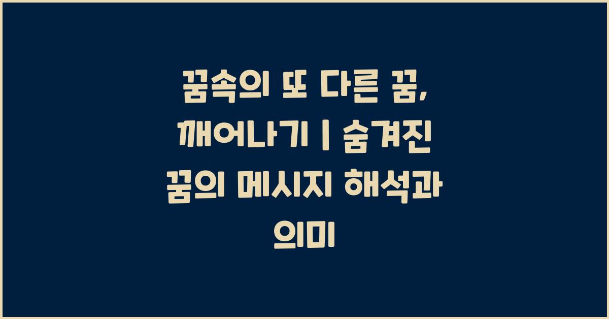 꿈 해석은 자신을 이해하는 데 중요한 역할을 합니다. 꿈속의 또 다른 꿈, 깨어나기 | 꿈해몽 꿈풀이 꿈해석 꿈의미의 과정을 통해 숨겨진 감정을 발견할 수 있습니다.
