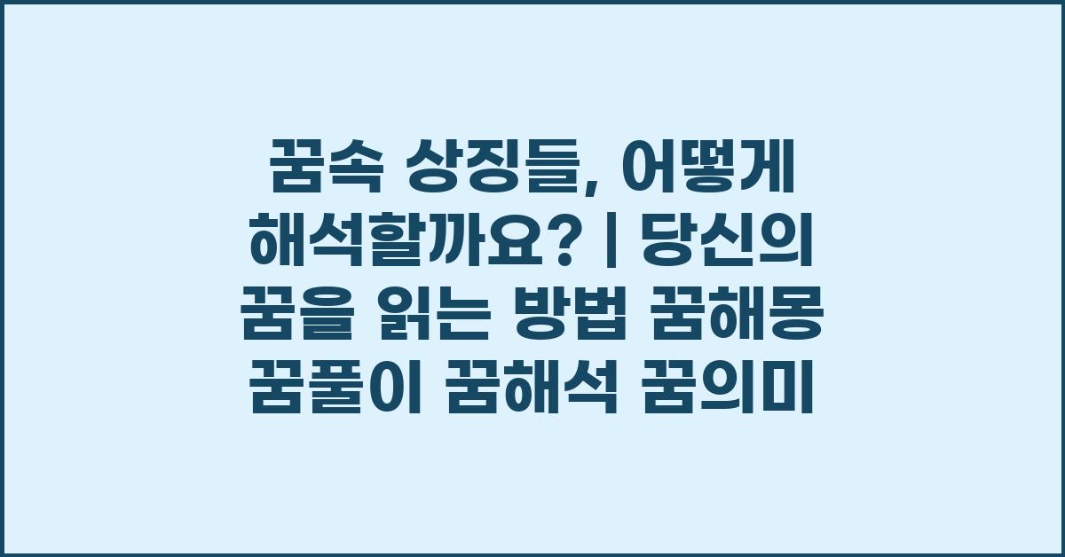 꿈속 상징들, 어떻게 해석할까요? 이러한 질문은 우리 스스로에게 던지는 중요한 자기 탐색의 시작점이 될 수 있습니다. 우리가 꾼 꿈의 상징들은 결국, 우리의 심리상태를 표현하는 방식으로 이해할 수 있습니다. 그렇게 살펴보며 성장해 나가는 과정이 될 것입니다.