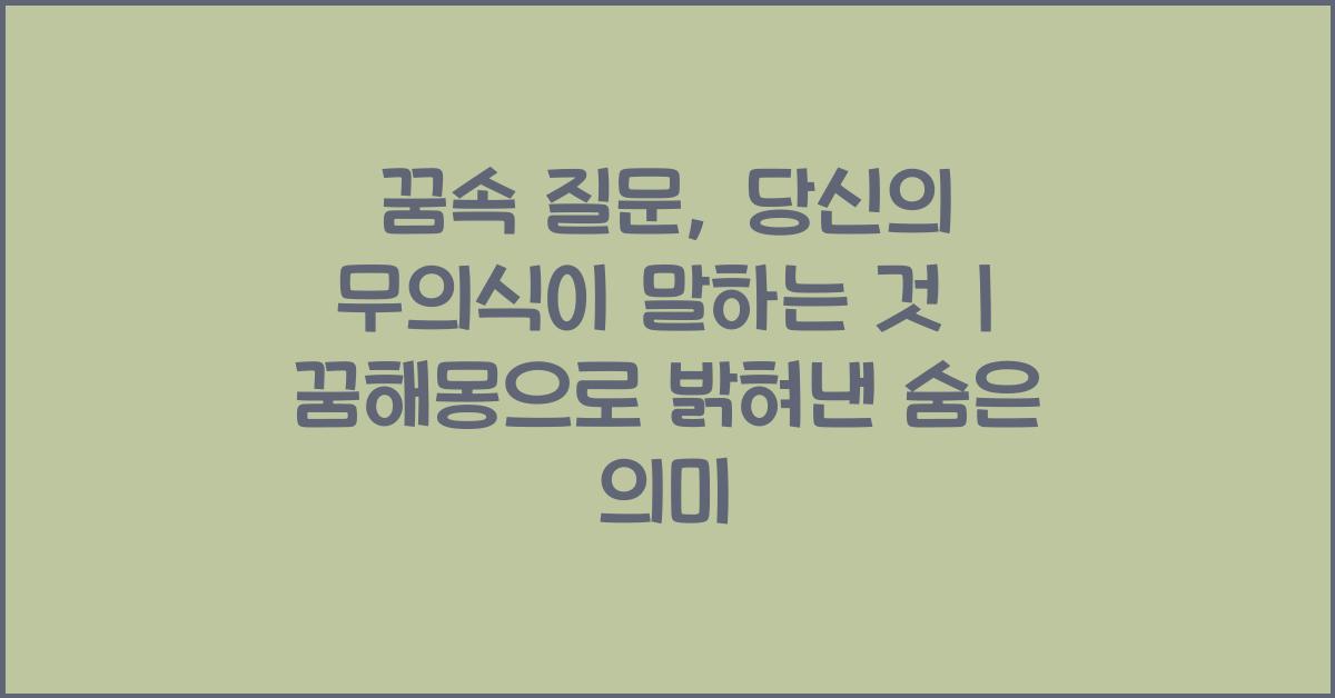이렇게 꿈속 질문, 당신의 무의식이 말하는 것 | 꿈해몽 꿈풀이 꿈해석 꿈의미를 통해 꿈의 깊은 의미를 찾는 방법을 공유하였습니다. 꿈은 단순한 이야기나 환상이 아니라, 우리의 내면 세상과 소통하는 방법입니다. 꿈속의 이미지를 통해 여러분의 마음속 이야기를 발견할 수 있기를 바랍니다.