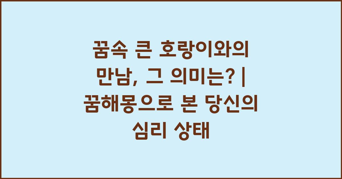꿈속 큰 호랑이와의 만남은 단순한 꿈 이상의 의미를 가집니다. 이것은 우리 내면의 복잡한 감정과 상황을 드러내주는 중요한 신호입니다. 이러한 꿈을 통해 우리는 스스로를 돌아보고 삶의 방향을 적절히 설정해 나가야 합니다. 꿈속 큰 호랑이와의 만남, 그 의미는? | 꿈해몽 꿈풀이 꿈해석 꿈의미를 통해 밝혀지는 나 자신을 발견하는 여정입니다.