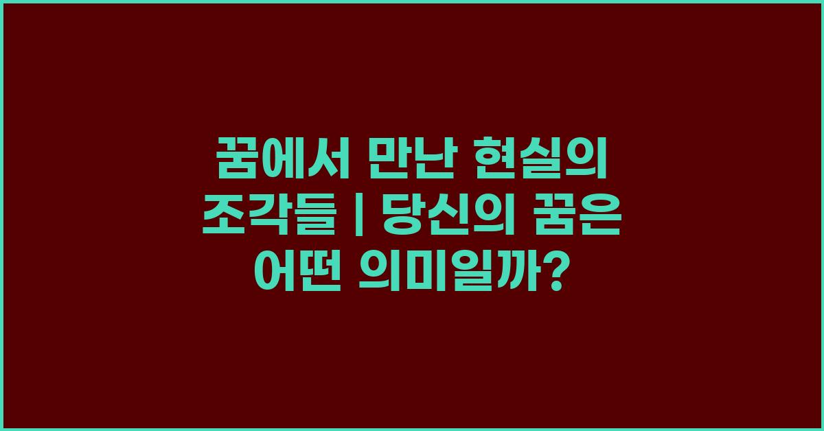 이와 같이 꿈에서 만난 현실의 조각들 | 꿈해몽 꿈풀이 꿈해석 꿈의미는 우리의 삶 속에서 중요한 역할을 합니다. 꿈을 통해 감정의 조각들을 정리하고, 더 나은 내일을 위해 나아가기를 바랍니다. 여러분의 꿈도 꼭 소중히 여겨주세요!