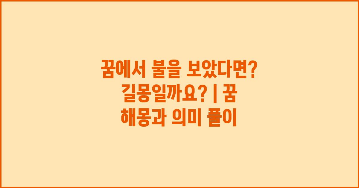 꿈에서 불을 보았다면? 길몽일까요? 꿈의 세계는 신비로운 이야기를 가지고 있습니다. 꿈에서 불을 보는 것은 많은 이들이 궁금해하는 주제 중 하나입니다. 꿈에서 불을 보는 경험은 아주 개인적인 것이며, 그 의미는 각자의 삶의 경험과 감정에 따라 달라질 수 있습니다.