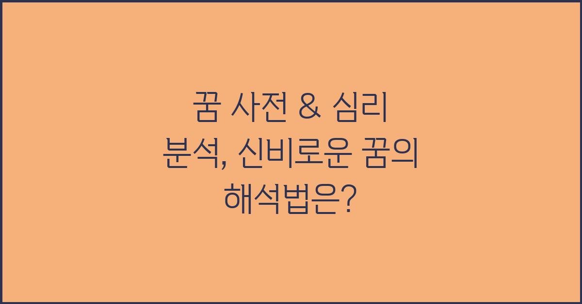 꿈은 인간의 무의식 속 깊은 곳에서 나오는 메시지일 뿐만 아니라, 우리의 생각과 감정을 반영하는 강력한 도구입니다. 많은 사람들이 꿈을 통해 자신의 내면을 이해하려 하며, 이는 꿈 해석의 중요성을 더욱 부각시킵니다. 꿈 사전 & 심리 분석: 꿈의 힘을 깨우다 | 꿈해몽 꿈풀이 꿈해석 꿈의미라는 주제 아래, 꿈이 가져다주는 신비로운 의미를 탐구해 보겠습니다. 각 꿈이 전하는 메시지를 해석하는 데 필요한 방법과 기법을 살펴보겠습니다.