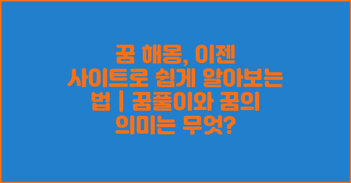 꿈 해몽은古代부터 우리에게 의미 있는 체험으로 여겨져왔습니다. 이제는 꿈 해몽, 이젠 사이트로 쉽게 알아보는 법이 있다면 더 할 나위 없겠죠. 꿈을 꾸었을 때, 그 의미를 파악하기 위해 여러 자료를 조사하거나 친구에게 물어보곤 했던 경험이 있으실 겁니다. 하지만 오늘은 여러분과 함께 꿈 해몽을 쉽게 이해하고 활용하는 방법을 알아보도록 하겠습니다. 꿈 해몽은 종종 무의식 속의 메시지를 전해주기도 하니, 이를 통해 일상에 변화를 줄 수 있습니다.