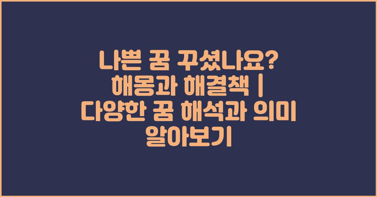 여러분, 나쁜 꿈 꾸셨나요? 꿈은 우리의 감정과 subconscious mind를 반영하는 신비한 존재입니다. 흔히 나쁜 꿈은 불안이나 스트레스 같은 부정적인 감정을 나타내는 경우가 많습니다. 이런 꿈을 꾸고 나면 고개를 갸우뚱하게 되고, 하루종일 기분이 우울해질 수 있죠. 정말 힘들고 괴로운 경우가 많죠. 이런 나쁜 꿈에 대한 해몽과 해결책을 알아보는 것은 매우 중요합니다. 여러 사람들이 다양한 상황에서 꿈을 꿉니다. 이 꿈이 어떤 의미를 지닐까요?