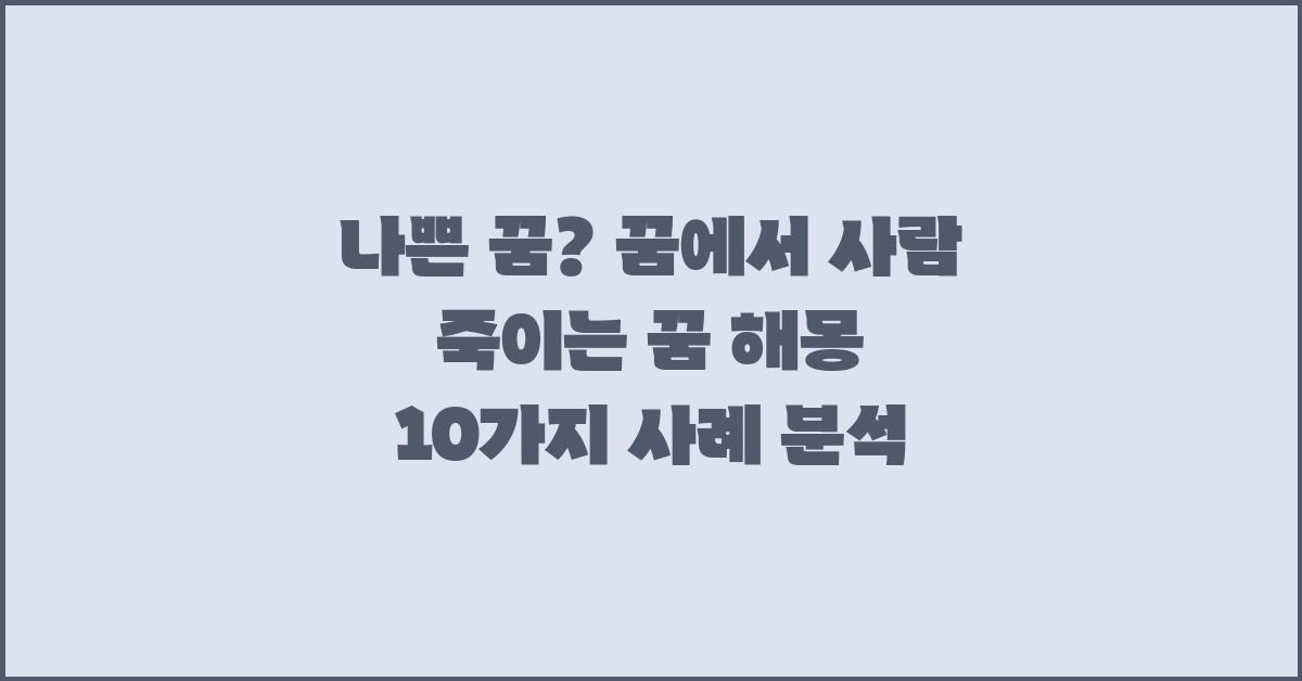 이제 꿈에서 사람을 죽이는 꿈에 대해 구체적인 사례로 들어가 보겠습니다. 각 사례는 개인의 상황과 감정에 따라 다르게 해석될 수 있습니다. 나쁜 꿈? 꿈에서 사람 죽이는 꿈 해몽을 보다 구체적으로 적용해보며 자신의 꿈과 연결해볼 수 있길 바랍니다.