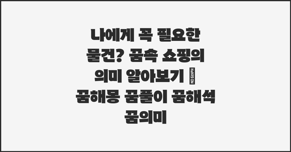 꿈속 쇼핑의 의미를 되새기면서, 꿈이 주는 메시지를 포용하고 받아들이는 것은 나를 위한 최소한의 투자임을 잊지 마세요. 여러분도 나에게 꼭 필요한 물건? 내가 알고 싶은 스스로를 발견하는 즐거운 여정을 떠나보세요!