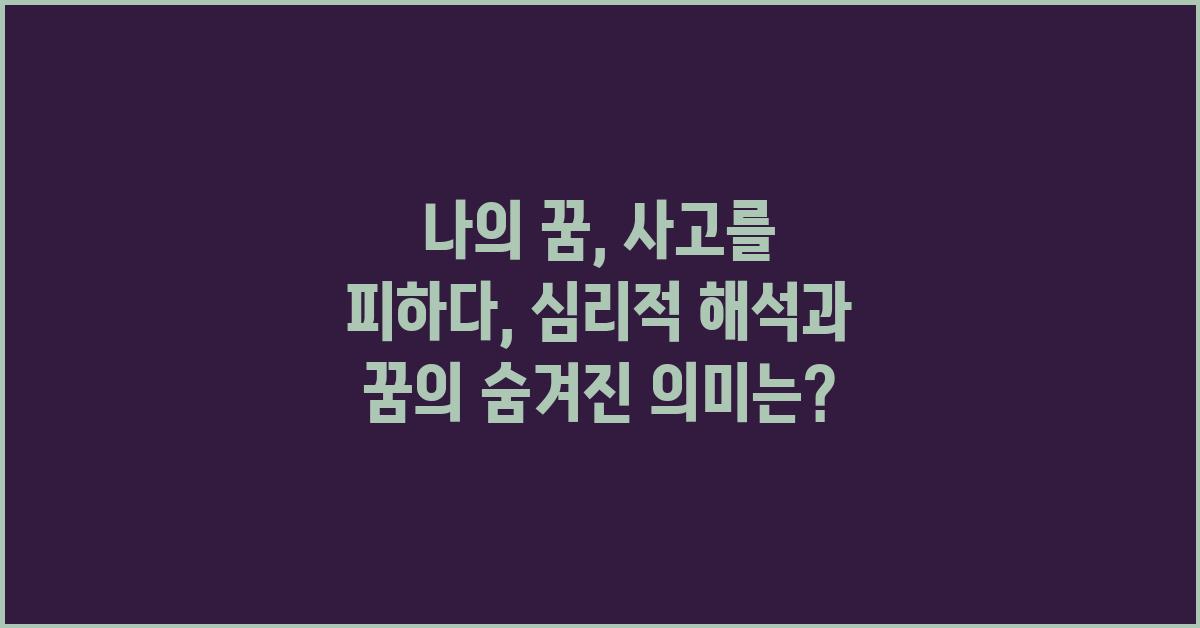 심리학자들은 꿈이 우리의 감정 상태와 깊은 연관이 있다고 말합니다. 그래서 꿈 속에서의 '사고'는 내면의 불안감을 상징할 수 있습니다. 이처럼 자기와의 대화를 통해 꿈이 직접적으로 나에게 무엇을 말하고자 하는지를 찾아보는 것이 중요합니다. 여러분도 이런 과정을 통해 자신을 이해하는 기회를 가져보셨나요?