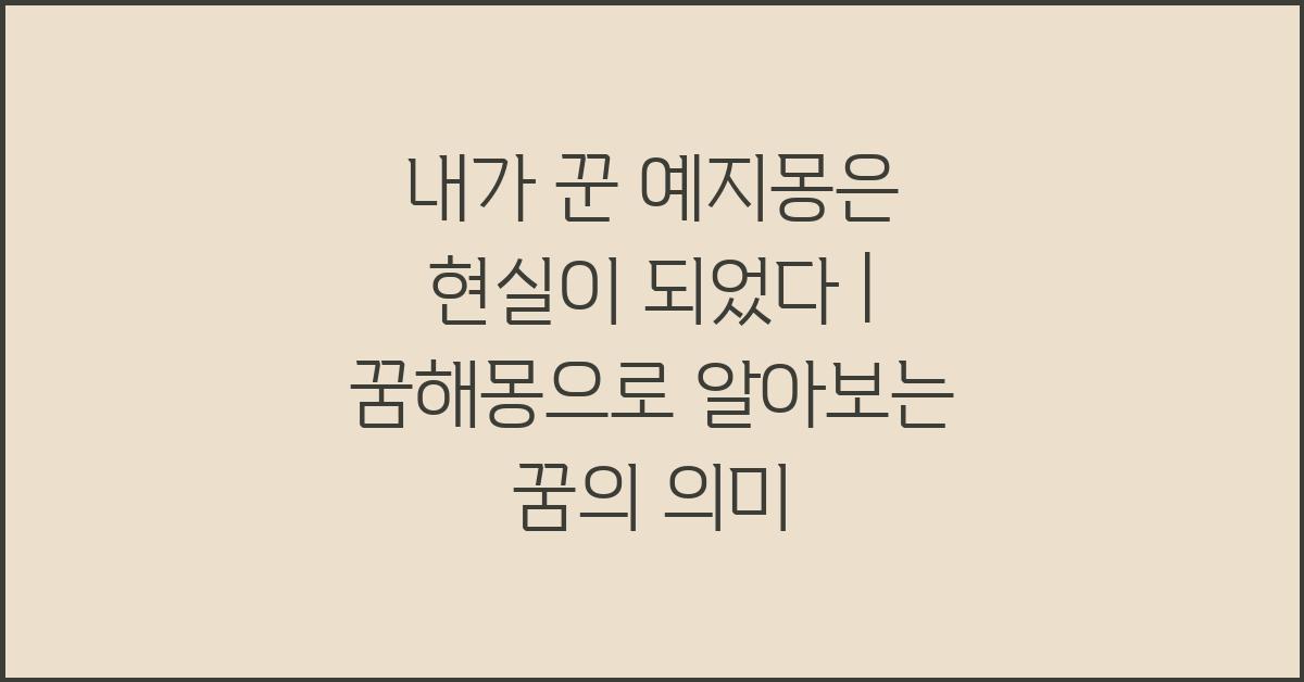 꿈의 상징은 문화나 사회적 배경에 따라 다르게 해석될 수 있습니다. 제가 꾼 예지몽은 현실이 되었다는 경험을 생각해보면, 어떤 사람에게는 그것이 경고로 해석될 수 있지만, 또 다른 사람에게는 기회로 받아들여질 수 있습니다. 중요한 것은, 꿈에서 느낀 감정이나 상황을 잘 기억하고 적어두는 것입니다. 이를 통해 자신만의 꿈해몽을 시도할 수 있습니다.