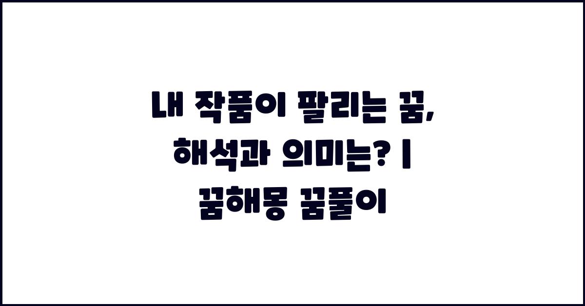 꿈은 우리의 내면 깊숙한 곳에서 비롯되는 신비로운 언어입니다. 그중에서도 '내 작품이 팔리는 꿈'은 정말 특별한 의미를 지닌 꿈 중 하나입니다. 이러한 꿈을 꿀 때, 여러분은 어떤 기대감과 불안을 동시에 느낄 수 있습니다. 과연 이 꿈이 나타내는 것은 무엇일까요? 내 작품이 팔리는 꿈, 기대해도 될까요? | 꿈해몽 꿈풀이 꿈해석 꿈의미에 대한 해답을 찾아보겠습니다.