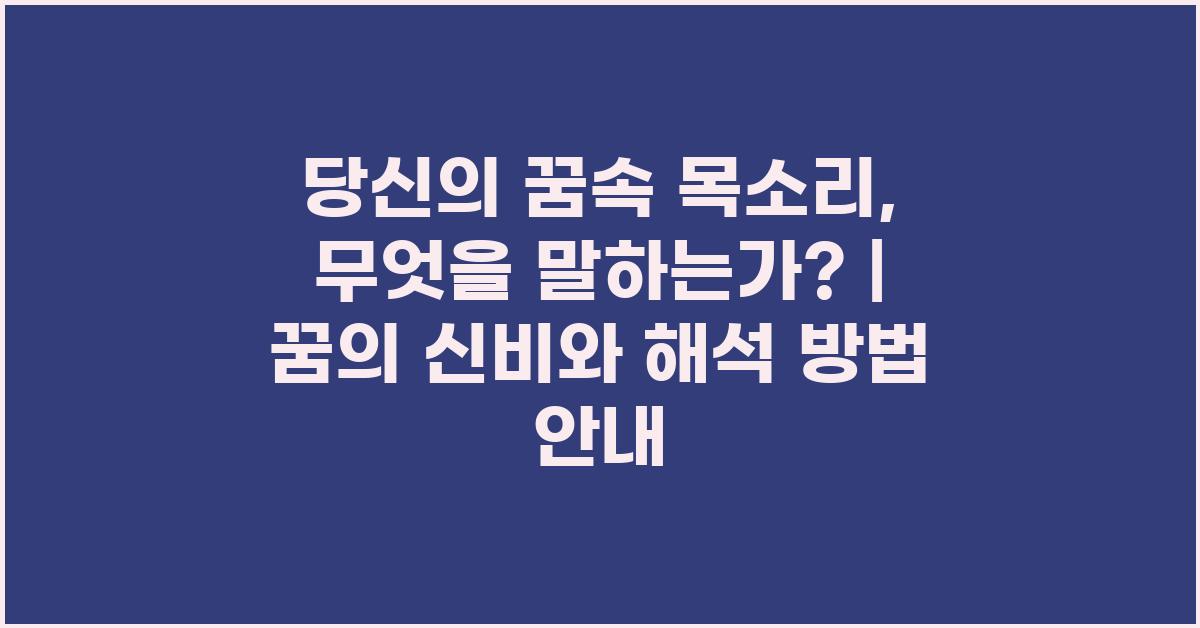 꿈은 우리의 무의식적인 생각이 드러나는 캔버스입니다. 심리학자 프로이트는 꿈을 '무의식의 왕국'이라고 표현했죠. 우리의 욕망과 불안을 반영하는 이러한 꿈속의 목소리는 종종 현실에서의 문제를 해결하려는 시도로 여겨지곤 합니다. 꿈속에서 들리는 목소리는 우리가 다루어야 할 실제적인 이슈나 감정의 징후일 때가 많습니다. 따라서 당신의 꿈속 목소리, 무엇을 말하는가?를 통해 자신을 이해하고, 내면의 갈등을 해소할 수 있는 기회를 가져볼 수 있습니다.