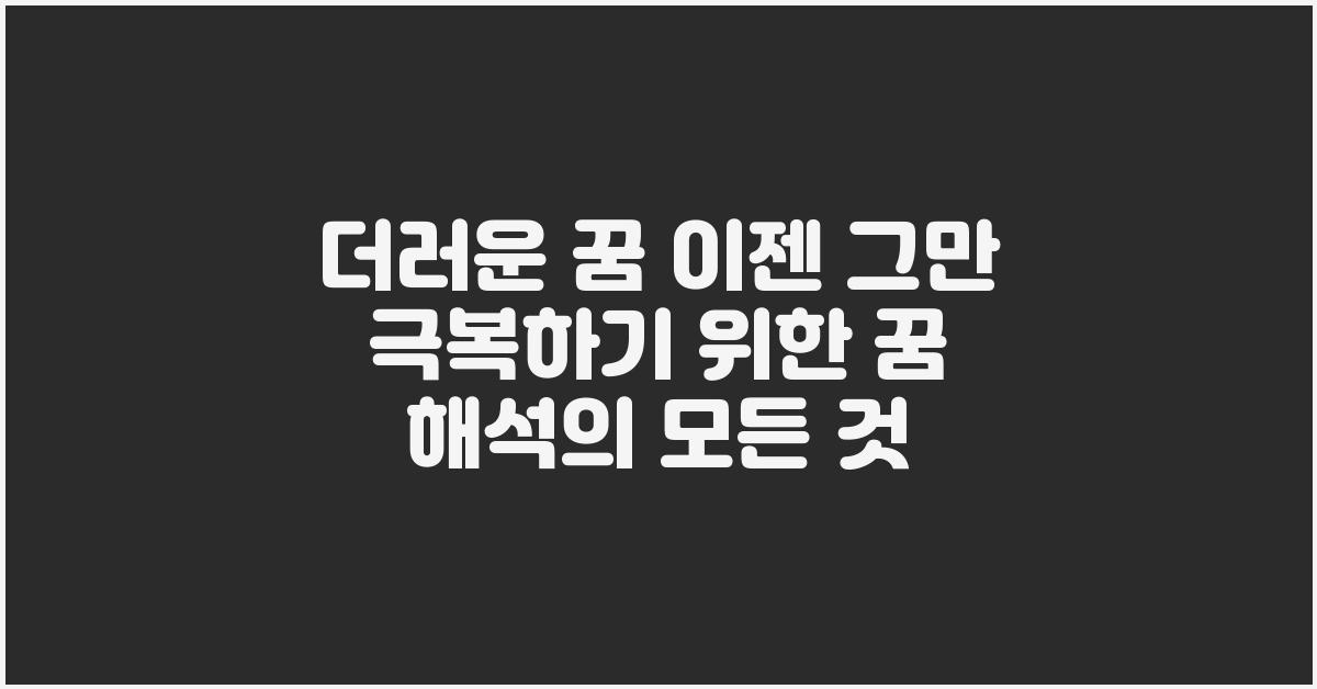 꿈에서 느낀 감정들이 실제 우리의 삶에 미치는 영향을 생각해보면 그 의미는 더욱 깊어집니다. 예를 들어, 여러분이 꿈에서 더럽고 불쾌한 상황에 처해 있었더라도, 그것은 사실 내면의 갈등이나 스트레스에서 비롯된 것일 수 있습니다. 그러므로, 더러운 꿈 이젠 그만! 극복하기 위해서는 우리가 마주하고 있는 내면의 문제를 직시하는 것이 중요합니다.