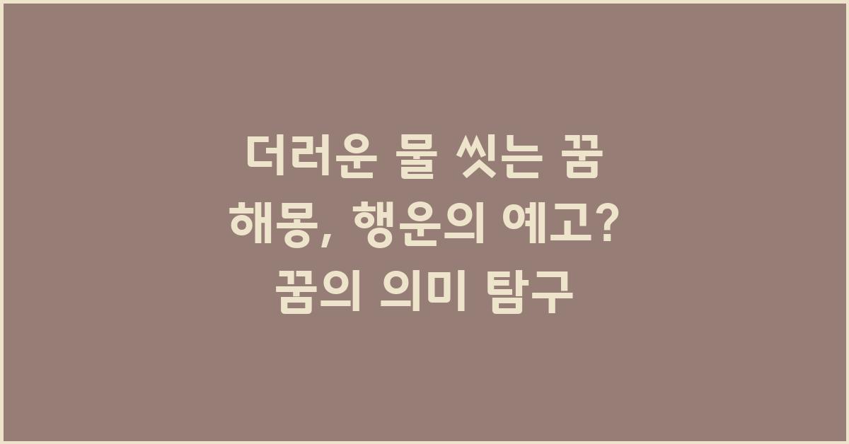 🔍 더러운 물 씻는 꿈 해몽의 시작