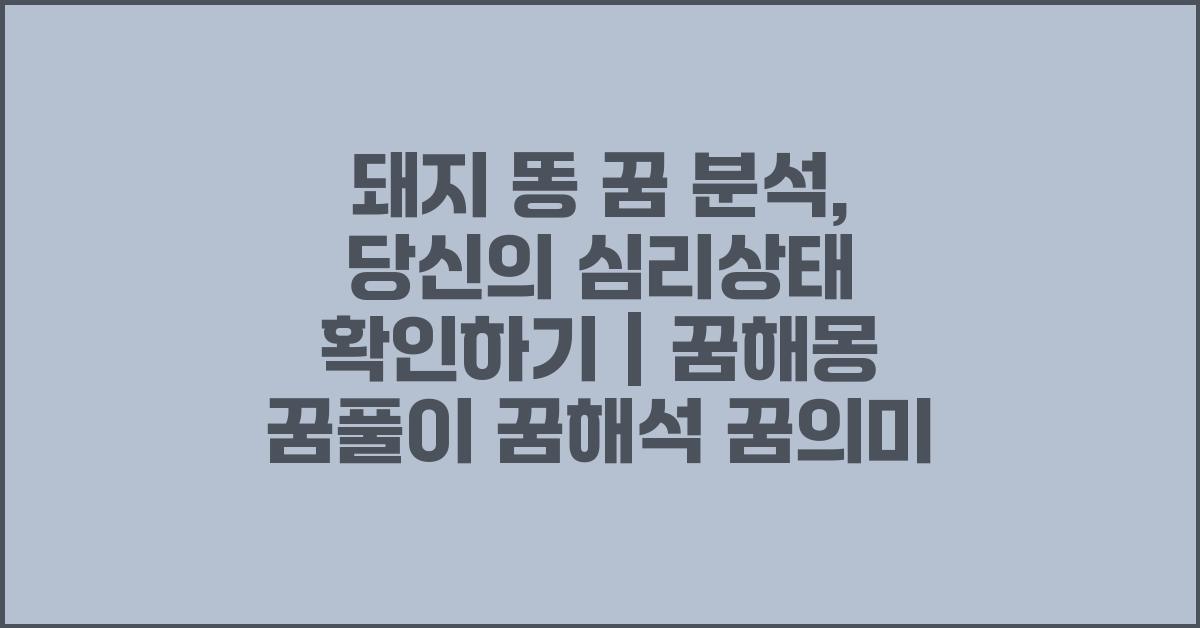 꿈은 우리 마음속 깊은 곳에서 일어나는 이야기입니다. 그리고 그 꿈의 의미를 분석해 보면 우리가 느끼고 있는 감정이나 현재의 심리 상태를 이해하는 데 큰 도움이 되지요. 오늘은 신기하고도 다소 유쾌한 돼지 똥 꿈 분석: 당신의 심리 상태는? | 꿈해몽 꿈풀이 꿈해석 꿈의미에 대해 이야기해 보겠습니다.