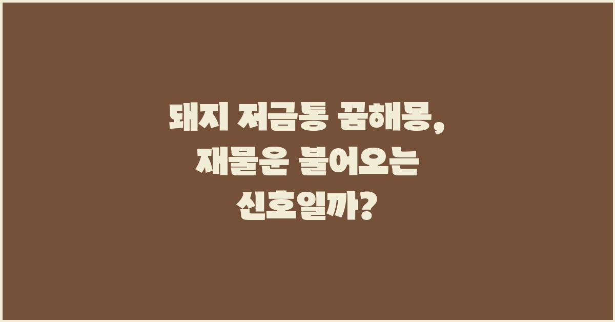 💡 돼지 저금통 꿈해몽의 다양한 해석