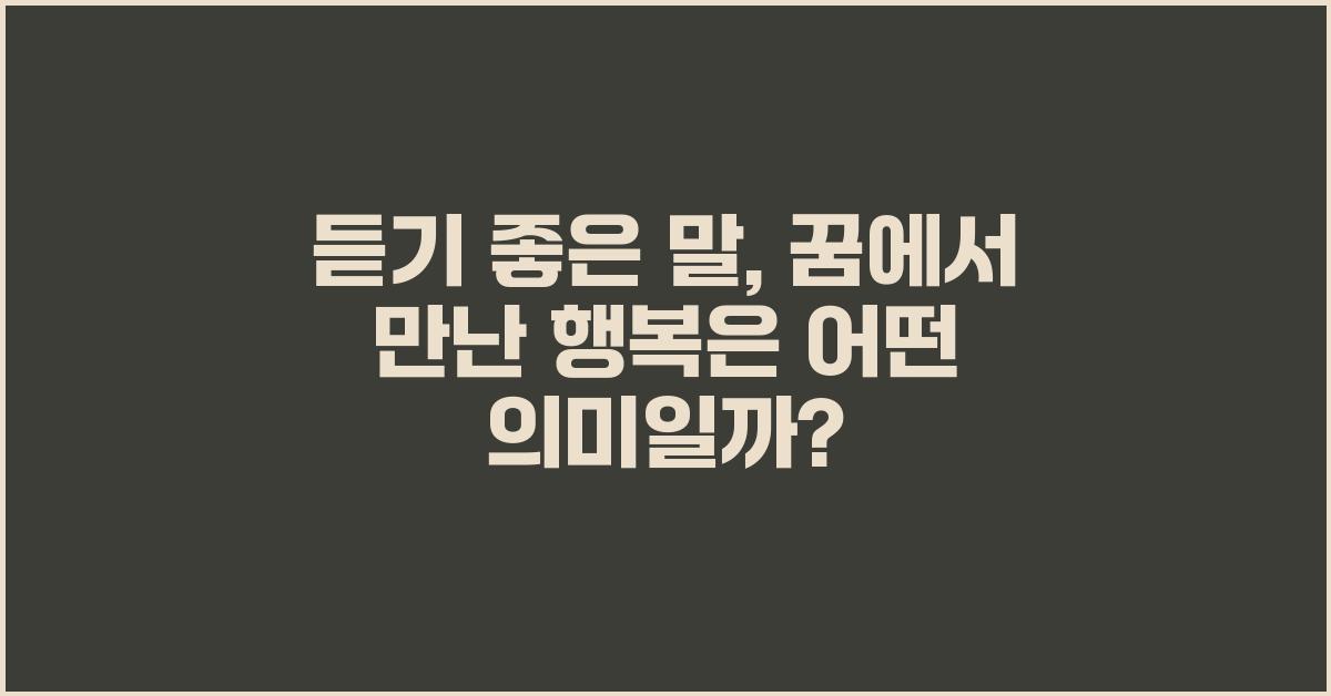 우리는 일상 속에서 다양한 말을 듣습니다. 그 중에서도 '듣기 좋은 말'은 우리의 마음에 따뜻한 울림을 줍니다. 타인의 격려와 지지의 메시지는 기분을 좋게 하고, 심지어 우리를 변화시키기도 합니다. 사회적으로 매우 중요한 이긍정적인 의사소통 방식은 개인의 삶에 긍정적인 영향을 미치는데, 이는 결국 꿈에서도 나타나는 '행복'의 기반이 됩니다.