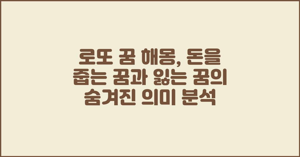 로또 꿈 해몽: 돈을 줍는 꿈, 잃는 꿈은 무슨 의미?라는 질문에 대한 통찰을 제공하며, 꿈은 단순한 상상이 아닌 삶의 다양한 표시로 해석될 수 있음을 알 수 있습니다. 이 꿈들은 우리의 심리를 반영하며, 우리가 마주해야 할 도전과 기회를 나타냅니다.