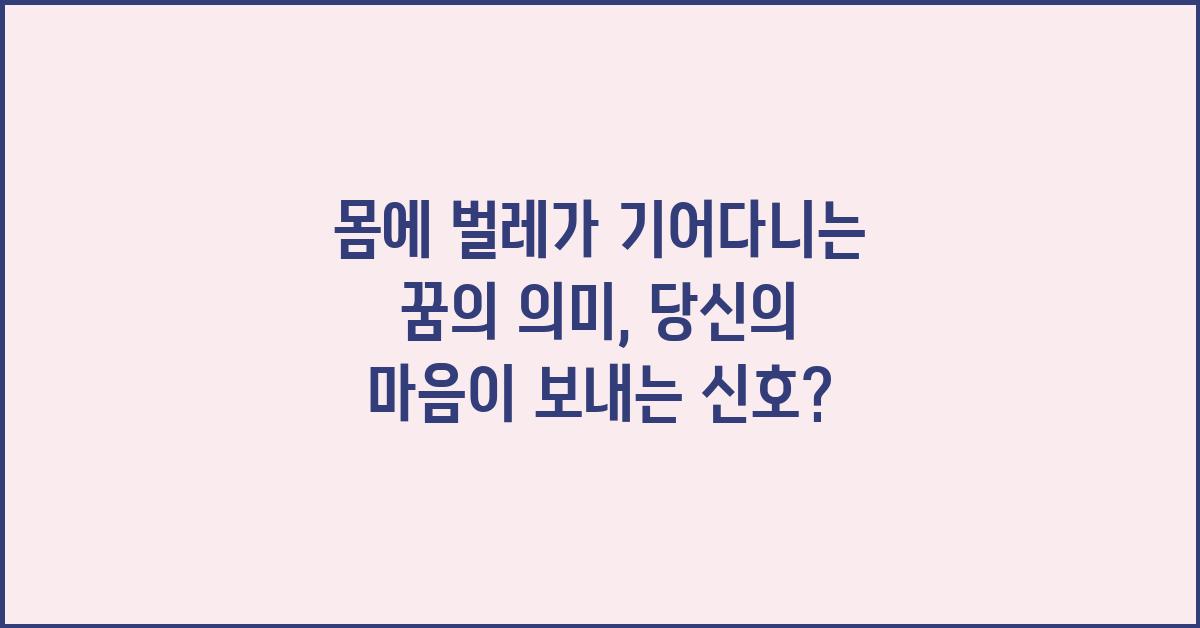 밤마다 우리의 정신은 꿈의 세계로 떠나게 됩니다. 그 곳은 현실에서는 경험할 수 없는 다양한 상황과 감정을 겪을 수 있는 신비로운 공간입니다. 특히 꿈 속에서 몸에 벌레가 기어다니는 경험을 하게 되면 많은 이들이 불안함이나 두려움을 느끼게 됩니다. 오늘의 주제는 바로 이 꿈의 의미, 즉 몸에 벌레가 기어다니는 꿈의 의미 | 꿈해몽 꿈풀이 꿈해석 꿈의미에 대해 이야기해 보겠습니다. 이 꿈이 과연 무엇을 의미하는 것일까요? 여러분도 그런 경험이 있으신가요? 🤔