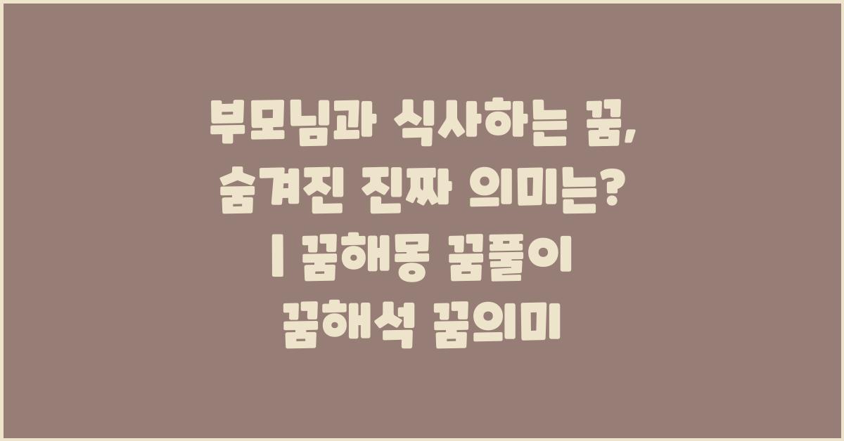 꿈은 우리가 잠을 자는 동안 무의식적으로 겪는 경험이지만, 그 속에 담긴 메시지는 종종 놀라울 정도입니다. 특히 가족, 특히 부모님과 관련된 꿈은 더욱 의미가 깊습니다. 그렇다면, 부모님과 식사하는 꿈, 무슨 의미일까? | 꿈해몽 꿈풀이 꿈해석 꿈의미에 대해 알아보겠습니다.