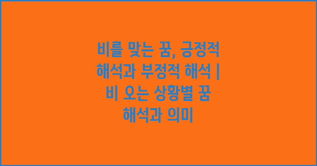 비를 맞는 꿈, 긍정적 해석과 부정적 해석 | 꿈해몽 꿈풀이 꿈해석 꿈의미에 대한 이야기를 나누었습니다. 꿈이 주는 메시지를 통해 우리는 더 나은 삶을 준비할 수 있습니다. 꿈의 의미를 잘 이해하고, 자신의 감정을 점검해보며 앞으로 나아가길 바랍니다.