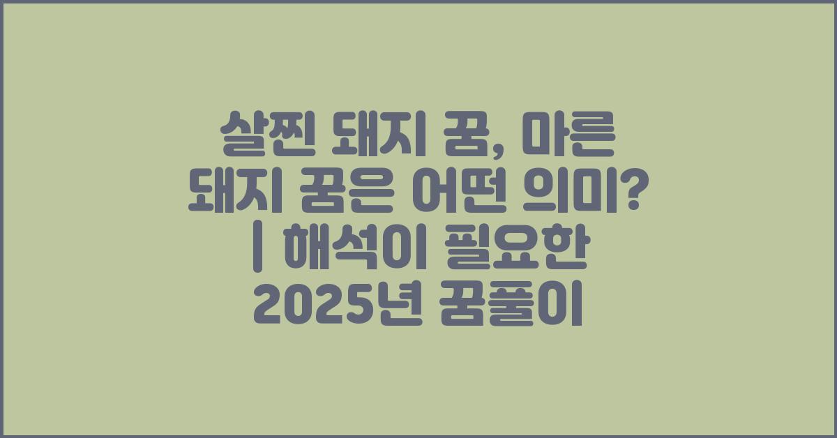 살찐 돼지 꿈, 마른 돼지 꿈은 우리가 왜 꿈에서 이런 상징을 보았는지를 생각해 보게 만든다. 꿈은 우리의 무의식이 드러나는 방식이기 때문에, 그 의미를 진지하게 받아들이고 해석하는 것이 중요한데, 이는 앞으로 나아갈 방향을 정하는 데 큰 도움이 될 것이다. 사람마다 꿈을 해석하는 방식은 다르지만, 모든 꿈이 담고 있는 메시지를 풀어내는 것은 언제나 흥미롭고 놀라운 경험이다.