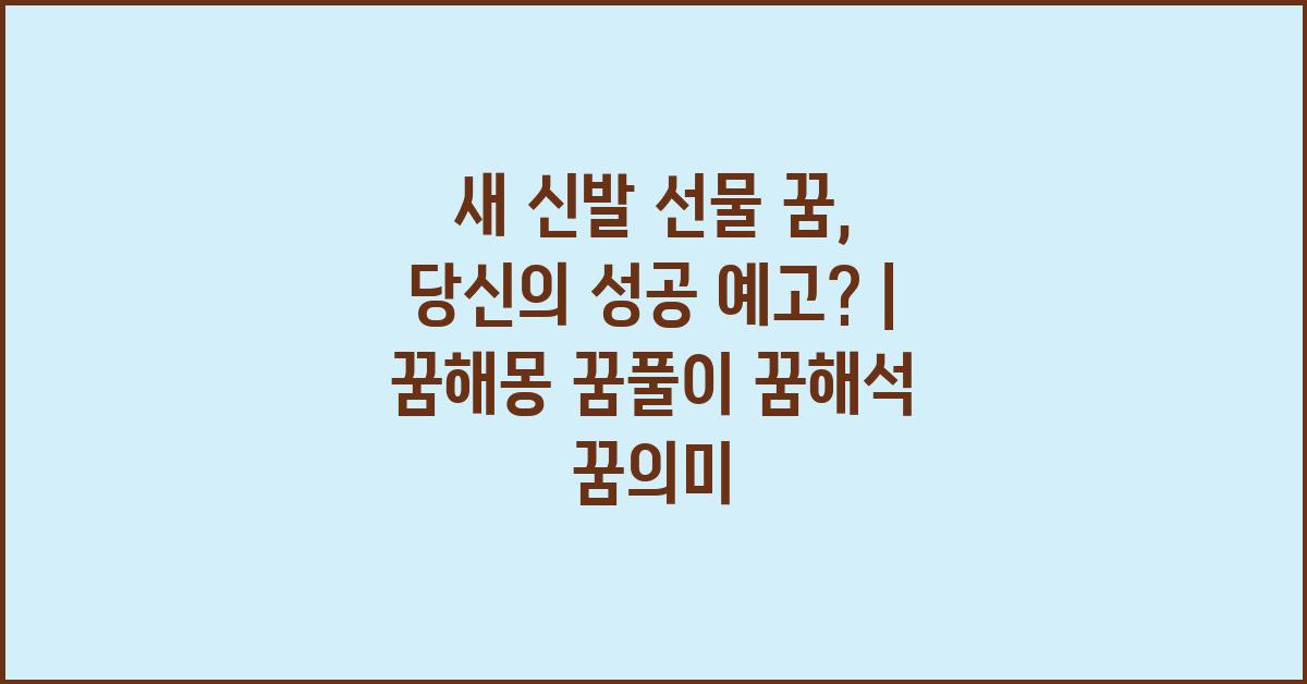 새 신발 선물 꿈, 행복한 미래를 예고? 바로 이런 질문을 던지게 하는 부분입니다. 이 꿈을 계기로 여러분도 새로운 변화를 맞이해볼 준비가 되어 있기를 바랍니다. 변화는 때로 두려울 수 있지만, 자신의 잠재력을 믿고 한 발 내딛는 것이 중요합니다. 꿈이 주는 신호를 잘 읽어 나가면 여러분의 삶에 큰 변화를 가져올 수 있을 것입니다.