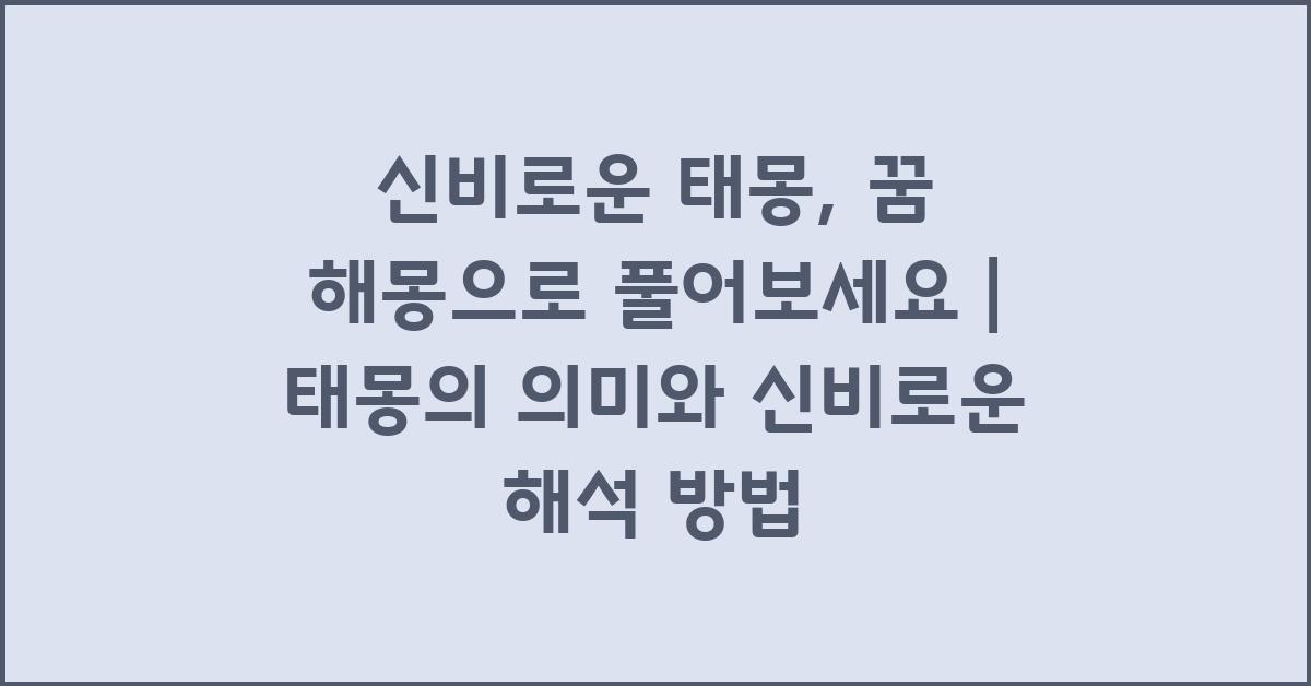 🔍 태몽 해석: 과거와 현재의 연결고리