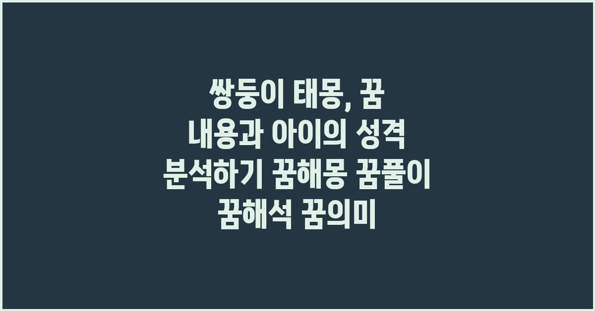 ✅ 쌍둥이 태몽과 성격 분석에 대한 요약