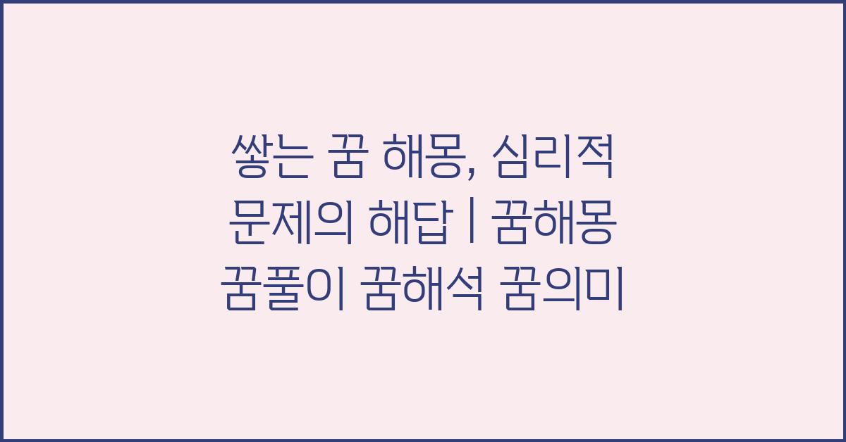 꿈은 우리의 잠재의식이 드러나는 특별한 창이라고 할 수 있습니다. 특히, '쌓는 꿈'은 그 자체로 복잡한 심리적 문제와 연결될 수 있습니다. 예를 들어, 꿈속에서 쌓아올린 것은 단순히 물체가 아니라, 우리의 감정과 기억을 상징합니다. 이런 꿈을 꾼 경험이 있다면, 아마도 무언가를 쌓아가고 있거나, 현재 감정적으로 어려운 상태에 처해 있을 가능성이 큽니다. 여러분도 이런 경험이 있으신가요? 꿈의 내용과 함께 여러분의 현실 문제를 돌아보는 계기가 될 수 있을 것입니다.