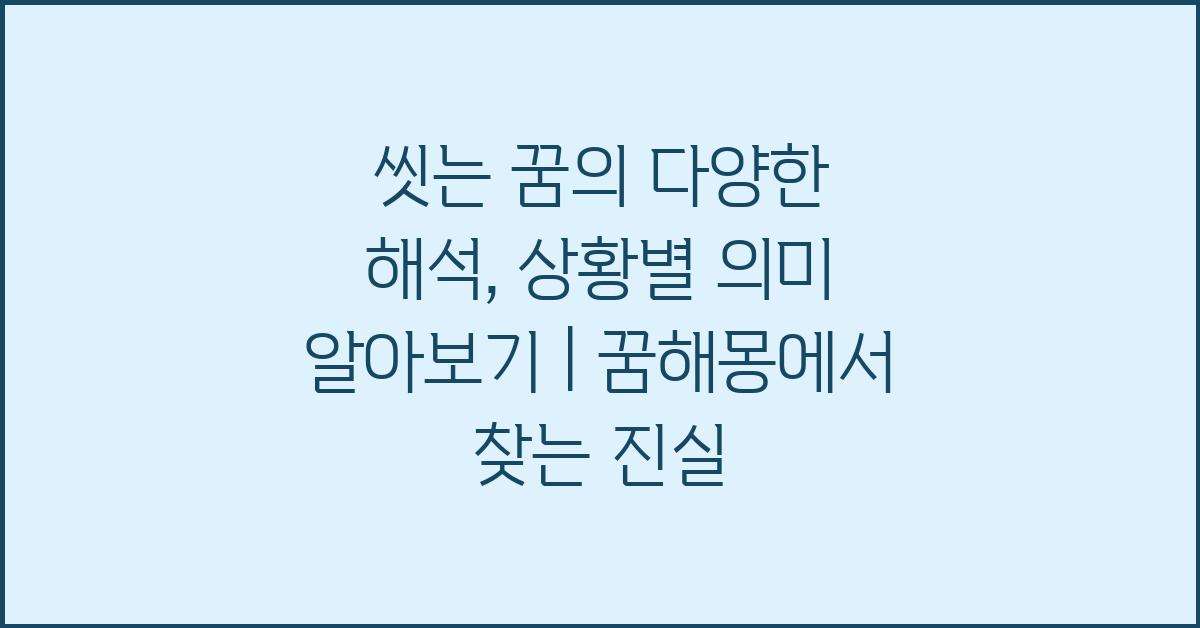 씻는 꿈은 복잡한 감정을 내포하고 있으며, 각기 다른 상황과 맥락에서 해석될 필요가 있습니다. 꿈속에서 경험한 씻기를 통해 여러분의 내면을 들여다보며, 더 나은 자신으로 거듭날 수 있기를 바랍니다. 씻는 꿈의 다양한 해석: 상황별 의미 알아보기 | 꿈해몽 꿈풀이 꿈해석 꿈의미는 여전히 그 매력이 사라지지 않네요!