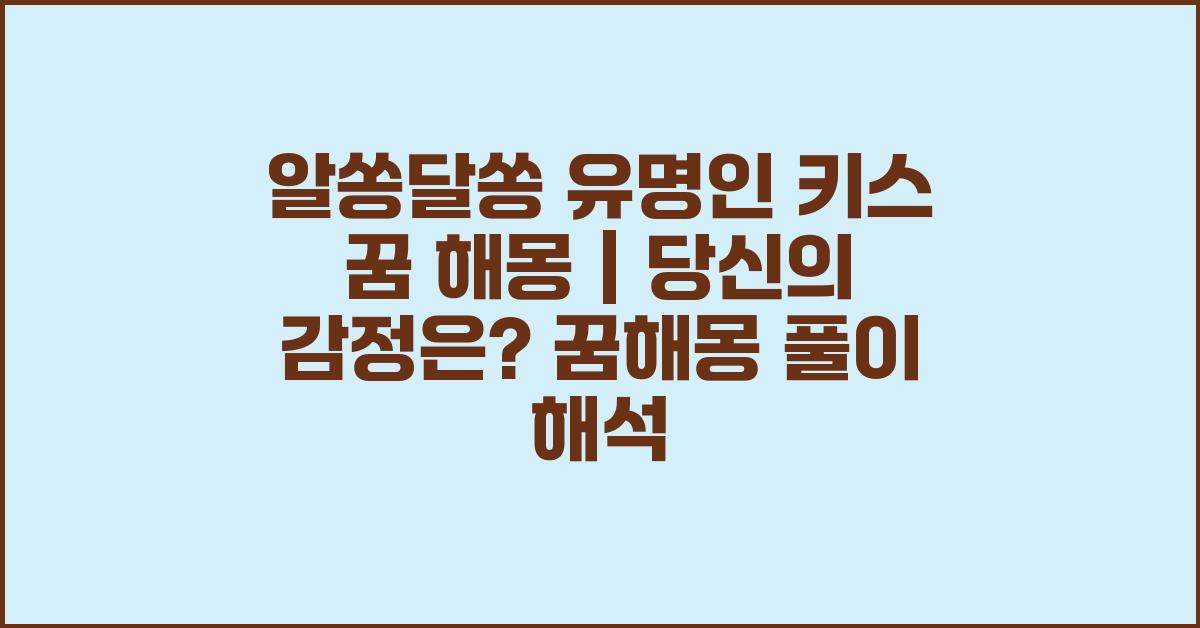 꿈은 과거의 기억, 현재의 감정, 그리고 미래의 욕망이 어우러진 신비로운 세계입니다. 특히 꿈에서 유명인과의 키스는 단순한 스치는 순간이 아니라 그 안의 깊은 감정과 의미를 숙고해야만 할 때입니다. 알쏭달쏭 유명인 키스 꿈 해몽 | 꿈해몽 꿈풀이 꿈해석 꿈의미를 통해 이러한 꿈을 이해하고 나아가 여러분의 감정을 살펴보도록 하겠습니다. 꿈에서 유명인과 키스를 나누었을 때, 여러분은 어떤 기분을 느꼈나요? 혹시 그 사람에 대한 특별한 애정이나 비슷한 고백을 꿈꾸고 있었던 것은 아닌가요?