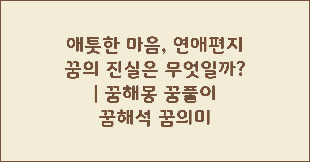 꿈은 우리 내면의 깊은 감정을 반영하는 경계선입니다. 특히 애틋한 마음이 담긴 연애편지를 꿈에서 만나게 된다면, 이는 단순한 상상이 아닐 수 있습니다. 애틋한 마음, 연애편지 꿈의 진실 | 꿈해몽 꿈풀이 꿈해석 꿈의미는 우리의 감정 상태와 강한 연관성을 지니고 있는데, 이 꿈이 주는 메시지를 알아가는 것에는 깊은 의미가 있습니다. 꿈 속의 연애편지는 누군가에 대한 그리움이나 아직 해결되지 않은 감정을 나타낼 수 있습니다. 이러한 체험은 과거의 사랑에 대한 아쉬움 혹은 현재의 사랑에 대한 갈망을 내포하고 있을지도 모릅니다.