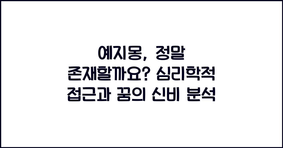 예지몽은 말 그대로 미래의 사건이나 정보를 미리 보는 꿈을 의미합니다. 어떤 사람들은 이런 꿈을 통해 예측할 수 있는 능력이 있다고 믿기도 합니다. 동서고금을 막론하고, 많은 문화에서 예지몽은 신성한 현상으로 여겨졌습니다. 여러분도 이런 경험이 있었나요? 믿기 힘든 이야기일지라도, 심리학적으로 접근해보면 점점 더 흥미로운 요소들이 발견됩니다.