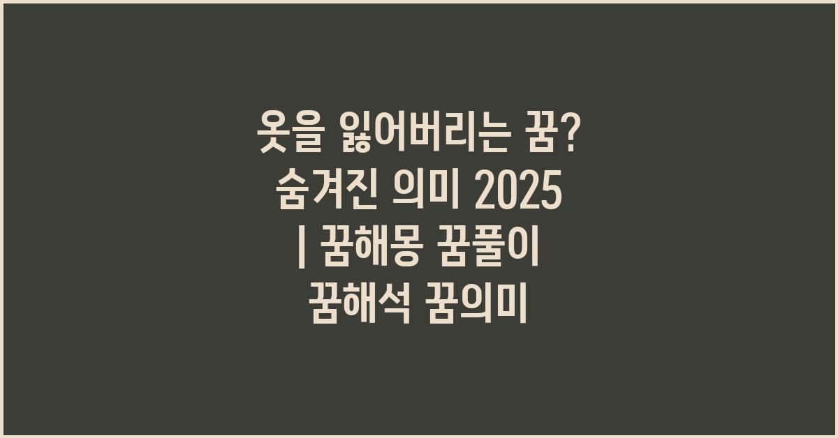 꿈은 우리의 내면과 대화하는 중요한 도구입니다. 옷을 잃어버리는 꿈은 여러 가지 의미를 내포하고 있으며, 이를 통해 자신의 감정을 이해하고 탐구하는 기회를 제공합니다. 불안과 혼란을 느끼고 있다면, 이 꿈이 제공하는 메시지를 통해 개인적으로 성장할 수 있는 길을 찾을 수 있을 것입니다. “옷을 잃어버리는 꿈? 뜻밖의 해석! | 꿈해몽 꿈풀이 꿈해석 꿈의미”를 통해 더욱 풍부한 해석을 찾고 마음의 안정과 위안을 얻으시길 바랍니다.