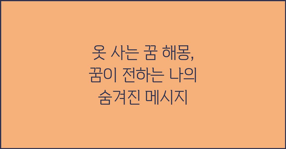 꿈은 우리의 마음 깊은 곳에서 일어나는 이야기를 담고 있는 신비로운 창입니다. 특히 '옷 사는 꿈 해몽'은 우리가 스스로를 어떻게 바라보고 있는지, 어떤 변화를 원하고 있는지를 알려주는 중요한 신호일 수 있습니다. 꿈에서 옷을 사는 것은 단순한 행동 이상의 의미를 지닙니다. 이는 개인의 정체성과 자아를 표현하는 방식으로 볼 수 있으며, 우리의 감정과 욕구가 꿈에 나타나는 방식을 이해하는 좋은 기회를 제공합니다.