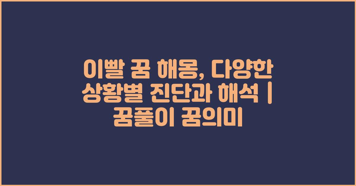 꿈에서 이빨이 등장하는 것은 매우 일반적인 현상입니다. 많은 사람들이 꿈에서 이빨이 빠지는 체험을 하곤 하죠. 이런 꿈은 단순한 상징을 넘어, 우리의 감정, 스트레스, 또는 일상에서의 어떤 문제와 연결될 수 있습니다. 그래서 이빨 꿈 해몽: 상황별 해석 | 꿈해몽 꿈풀이 꿈해석 꿈의미를 통해 다양한 해석을 살펴보는 것이 중요합니다. 여러분도 아마 꿈에서 이빨에 관한 특별한 경험이 있으실 텐데요, 그 경험을 다시 떠올리며 이 글을 읽어보세요.