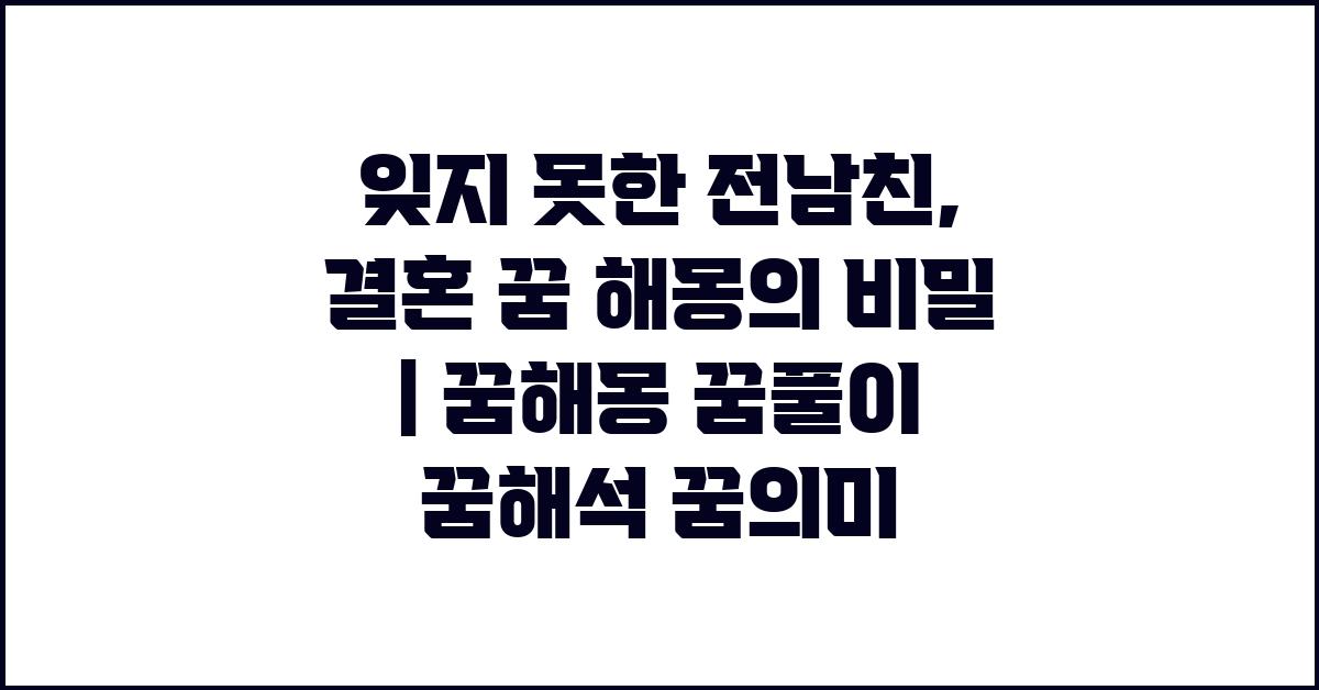 꿈은 우리의 마음속 깊은 곳을 드러내는 거울과 같습니다. 가끔 잊지 못한 전남친이 꿈에 나타나는 경우가 잦은데요, 이는 우리 감정의 복잡함을 반영하기도 하고, 때로는 결혼에 대한 고민이 꿈속에서 펼쳐질 수 있습니다. 이번 기사에서는 잊지 못한 전남친, 결혼 꿈 해몽 | 꿈해몽 꿈풀이 꿈해석 꿈의미에 대해 탐구해 보겠습니다.