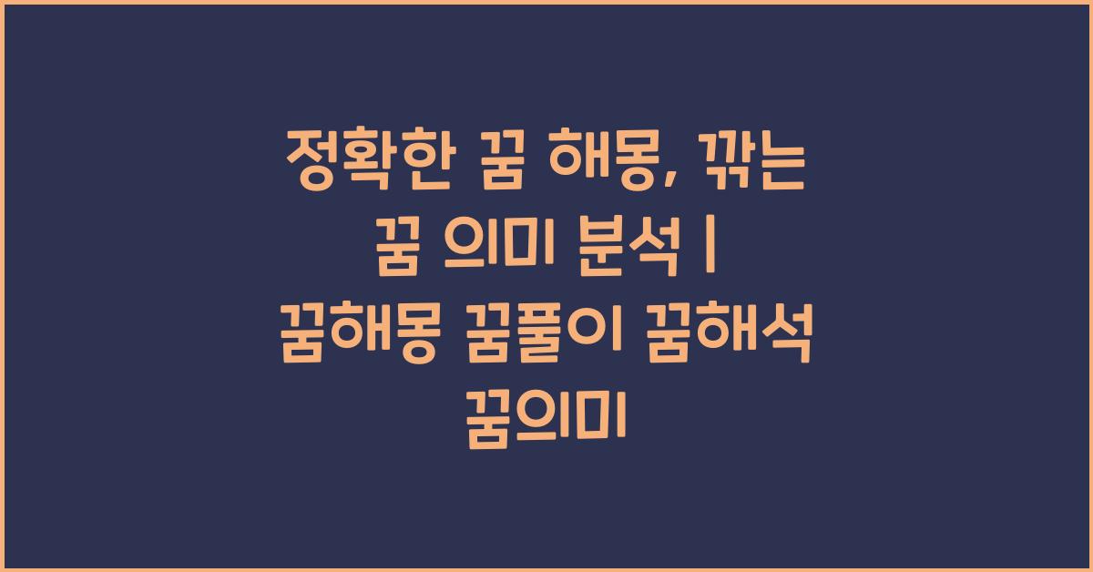 꿈은 우리의 무의식적인 생각과 감정을 표현하는 방식입니다. 꿈을 통해 우리는 잊고 있던 기억들을 떠올리거나, 현재의 문제에 대한 해결책을 찾을 수 있습니다. 특히 정확한 꿈 해몽을 통해 꿈의 의미를 이해하면, 일상생활에서 유용한 통찰력을 얻을 수 있습니다. 일반적으로 꿈은 단순한 상상이 아니라, 우리의 심리 상태를 반영하고 있다는 점에서 그 중요성이 커집니다. 또한, 꿈의 해석은 문화적 배경에 따라 달라질 수 있으므로, 다양한 관점에서 접근해 보는 것이 필요합니다.