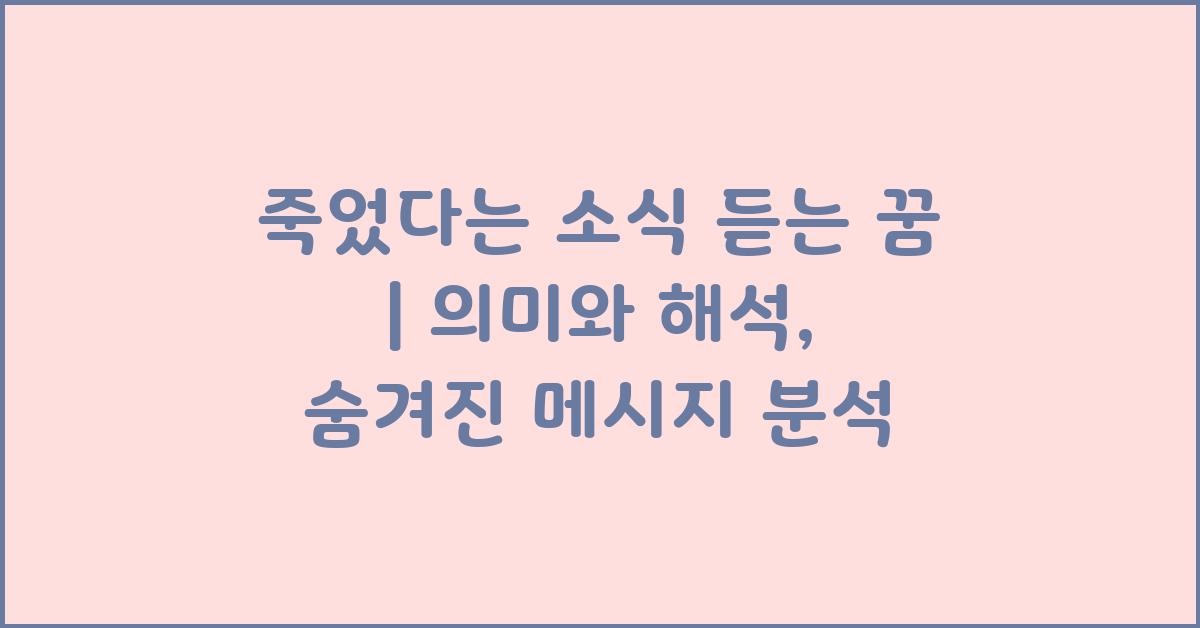 📌 죽었다는 소식 듣는 꿈의 기본 의미