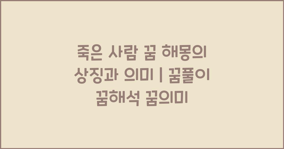 죽은 사람 꿈은 삶과 죽음에 대한 깊은 질문을 던집니다. 이 글에서는 꿈의 상징과 의미를 탐구하며, 죽은 사람 꿈 해몽이 어떤 시사점을 주는지 알아보겠습니다.