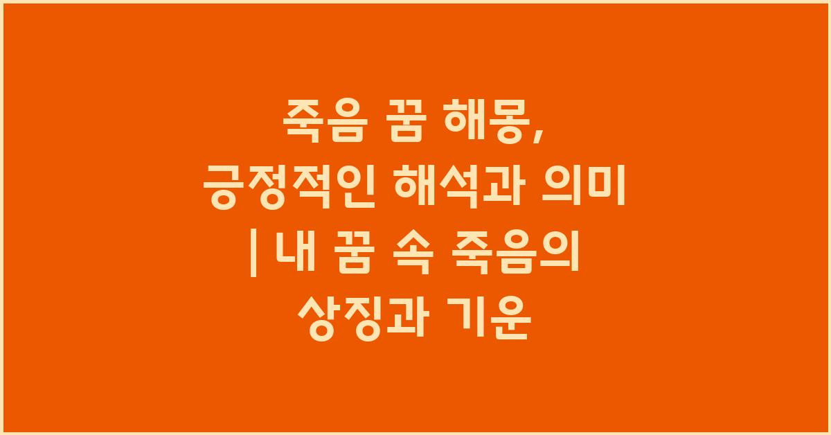 죽음 꿈 해몽: 긍정적인 해석과 의미 | 꿈해몽 꿈풀이 꿈해석 꿈의미는 우리에게 중요한 메시지를 전달해줄 수 있습니다. 이를 통해 자신의 감정과 상황을 돌아보고, 더 나은 선택을 할 수 있는 기회를 찾을 수 있습니다. 한 번 더 깊고 성찰하게 되는 기회로 삼아보세요. 여러분도 이런 경험 있으시죠?