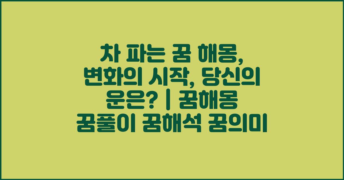 일상에서의 작은 변화가 우리에게 큰 영향을 미칠 수 있습니다. 예를 들어, 한 가지 새로운 취미를 시작하는 것은 전혀 다른 사람으로서의 변화를 준다는 것을 느꼈던 순간들이 있습니다. 따라서 차 파는 꿈 해몽: 과감한 변화의 시작 | 꿈해몽 꿈풀이 꿈해석 꿈의미는 단순히 자동차에만 국한되지 않고 삶 전반에 대한 새로운 시작을 독려하는 것입니다.