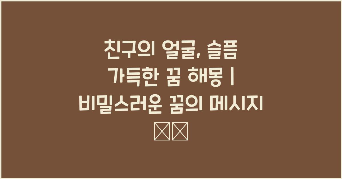 꿈은 우리에게 과거의 기억, 현재의 고민, 그리고 미래의 바람을 전달하는 특별한 메시지입니다. 친구의 얼굴, 슬픔 가득한 꿈 해몽은 이러한 꿈의 대표적인 예시로, 단순한 이미지를 넘어서 깊은 의미를 지니고 있습니다. 우리가 친구의 얼굴을 꿈에서 보았을 때, 그 친구가 느끼는 감정이나 현재 상태가 꿈에 나타날 수 있는데, 이는 꿈의 해석에서 중요한 단서가 됩니다.