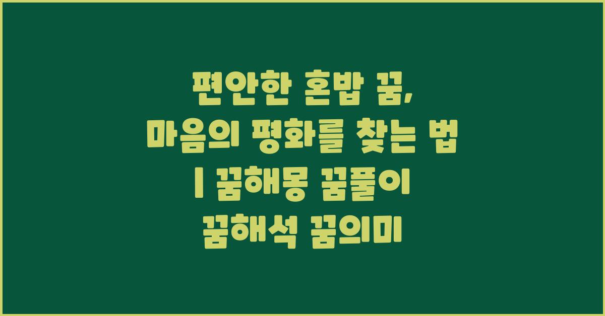 편안한 혼밥 꿈은 여러 가지 심리적 메시지를 담고 있습니다. 혼자 밥을 먹었다는 것은 사실 혼자의 시간을 통해 자신을 돌아보고, 내면의 소리에 귀 기울이려는 시도일 수 있습니다. 우리는 종종 다른 사람과의 관계나 외부의 소음 속에서 진정한 자신을 잃어버리기 쉽습니다. 그러나 이 꿈을 통해 심리적 편안함과 고독을 동시에 찾는 과정을 겪을 수 있습니다.