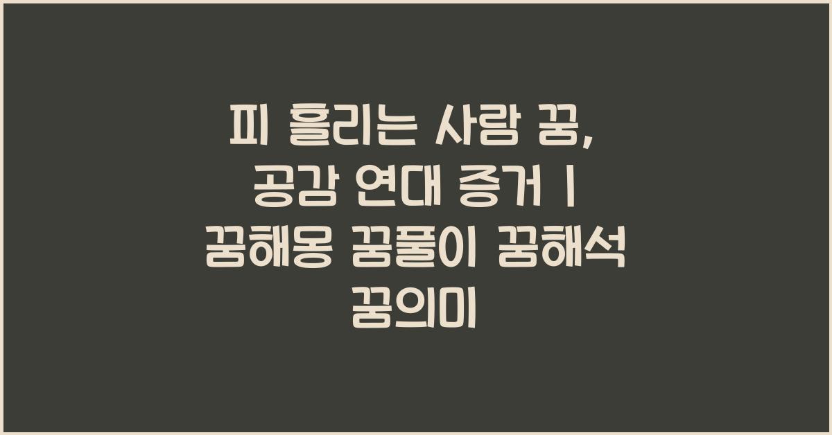 피 흘리는 사람 꿈은 단순한 환상이 아닙니다. 이 꿈의 해석과 의미를 통해 우리는 인간의 복잡한 감정과 경험을 바라볼 수 있습니다. 그 꿈이 우리에게 전하는 메시지를 함께 알아보세요.