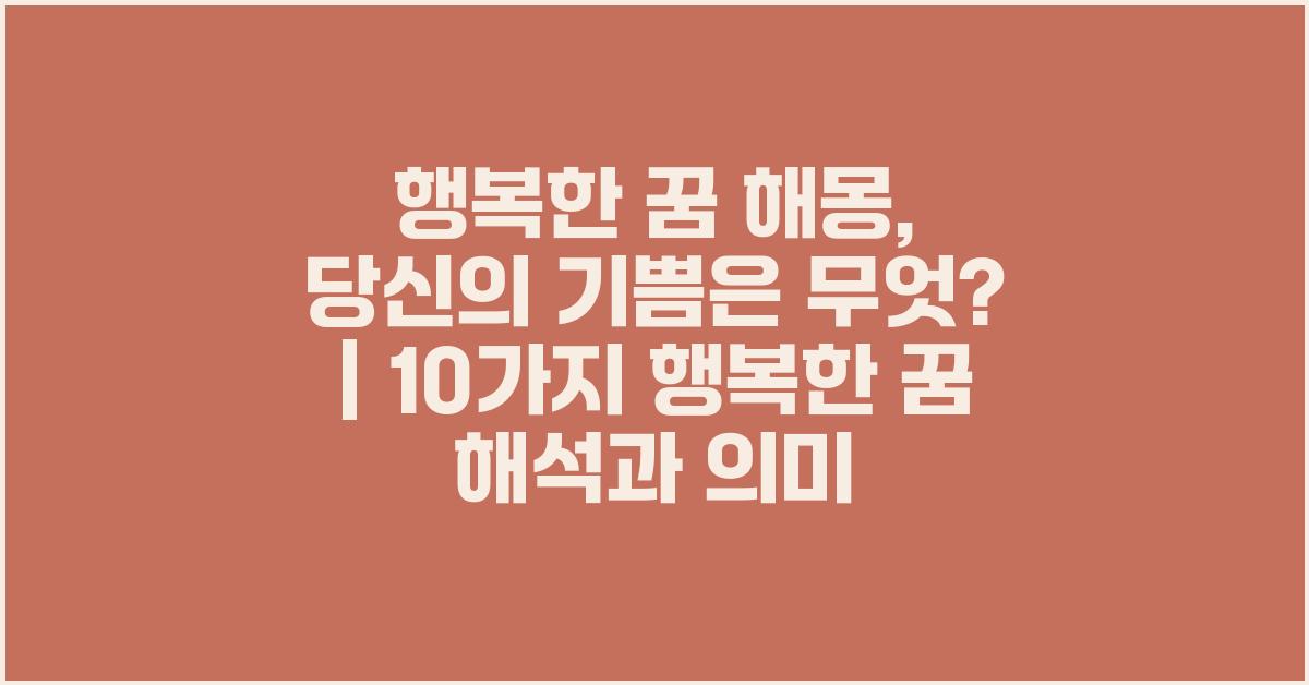 우리는 꿈을 꾸며 밤을 보내고, 종종 꿈의 내용을 잊어버리기도 합니다. 하지만 어떤 꿈들은 우리의 감정이나 삶의 상태를 반영하는 경우가 많습니다. 오늘은 행복한 꿈 해몽: 당신의 기쁨은 무엇? | 꿈해몽 꿈풀이 꿈해석 꿈의미에 대해 이야기해 보려 합니다. 꿈은 단순한 환상이 아니라, 실질적으로 우리의 내면을 드러내는 방법이기도 하죠. 그럼 구체적으로 어떤 꿈들이 행복한 의미를 지니고 있을까요?